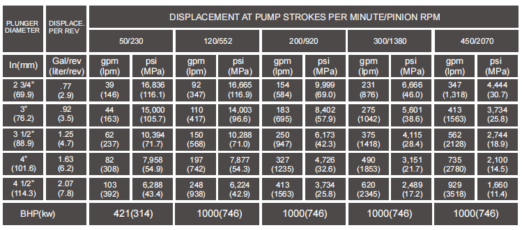 Max. BHP:1000BHP(746Kw)
